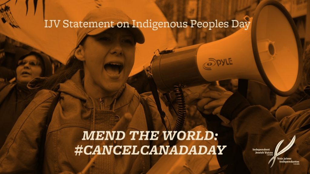 Independent Jewish Voices Canada (IJV) supports the call made by Idle No More and other Indigenous land and water protectors to cancel Canada Day celebrations this year. The city of Victoria has already done so, and we call on other cities and towns to follow suit. On July 1st this year, we should not be celebrating colonization and genocide. Rather we should be coming together to uplift Indigenous communities, and support Indigenous-led decolonization efforts. To that end, Idle No More has put together a list of #CancelCanadaDay actions happening in different parts of the country. We encourage you to join an action, or to organize one in coordination with Indigenous leadership wherever you live.