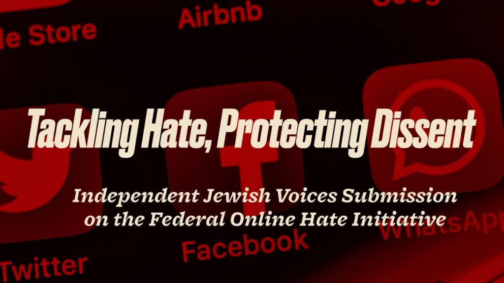 On August 14, 2020, Independent Jewish Voices Canada was invited to participate in a roundtable of Jewish organizations to discuss how the federal Ministry of Justice can go about combating online hate. The roundtable was organized by MP Arif Virani, Parliamentary Secretary to the Minister of Justice and Attorney General for Canada. Prime Minister Justin Trudeau has since promised to tackle online hate during his throne speech in September.